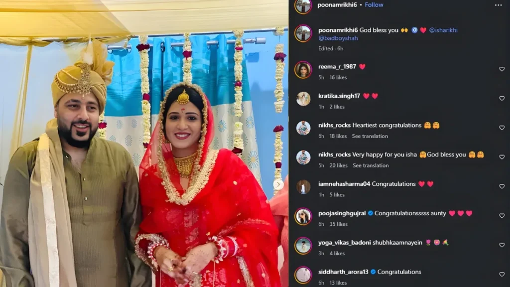 ईशा की मां पूनम रिखी ने इंस्टाग्राम पर तस्वीरें और वीडियो शेयर किए। उनका कैप्शन था – “God bless you 🙌 🧿❤️”। इसने इंटरनेट पर तहलका मचा दिया है। फैंस इसे बादशाह की दूसरी शादी मान रहे हैं, जो उनकी 2020 में हुई तलाक के छह साल बाद हुई हो सकती है। हालांकि, अभी तक न बादशाह ने और न ईशा ने कोई आधिकारिक पुष्टि की है।